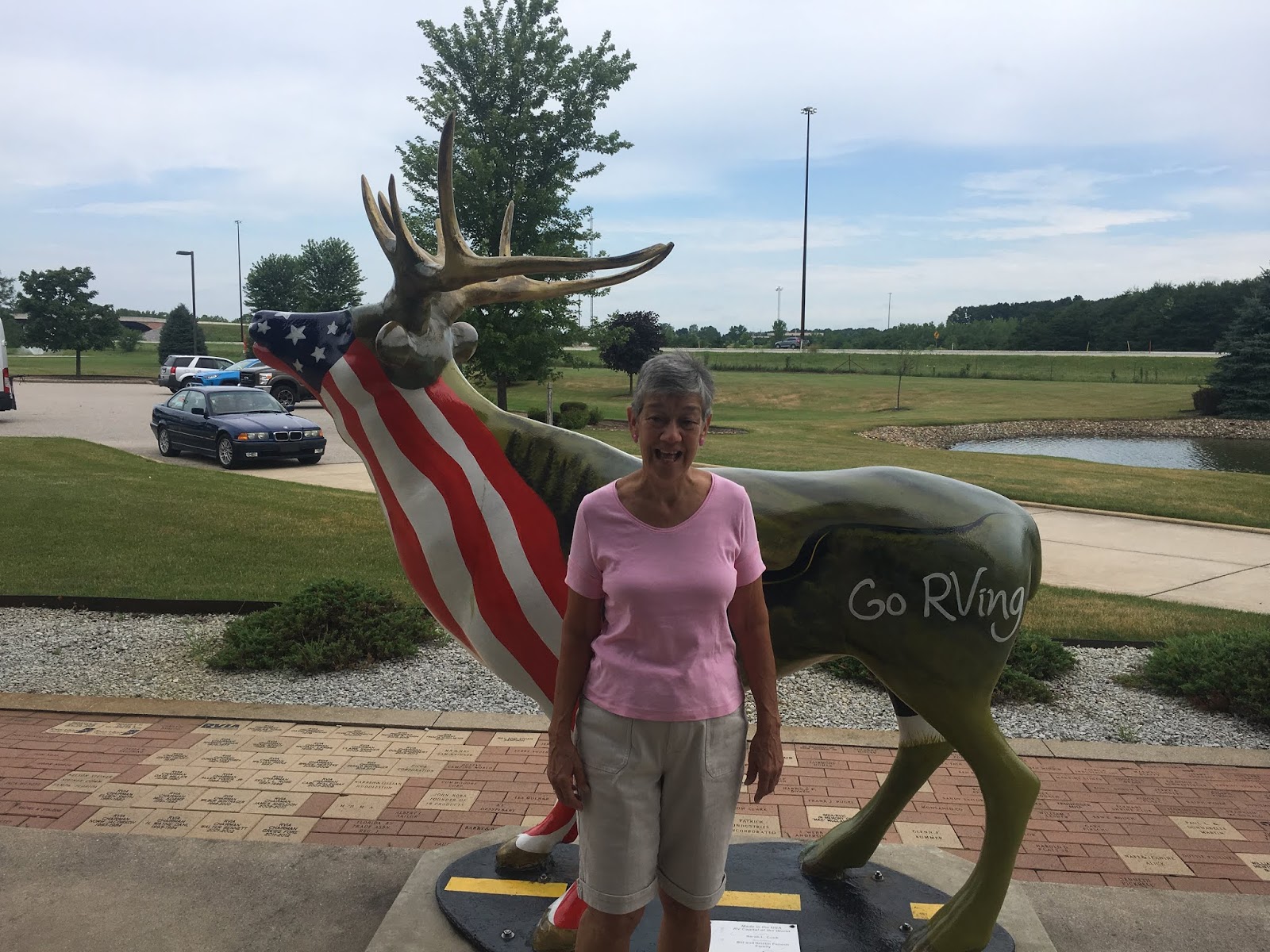 On Saturday we continued east to Bristol, Indiana which is midway between Elkhart and Middlebury. Both Elkhart and Middlebury have sights and rv factories we wanted to see. We landed at a private campground called Eby's Pines in Bristol. We got a nice site near a pond. On Sunday we did a lot. We started by visiting the RV Hall of Fame museum. It is a great museum which has both representative examples of old and modern rv's. It is a great experience.
